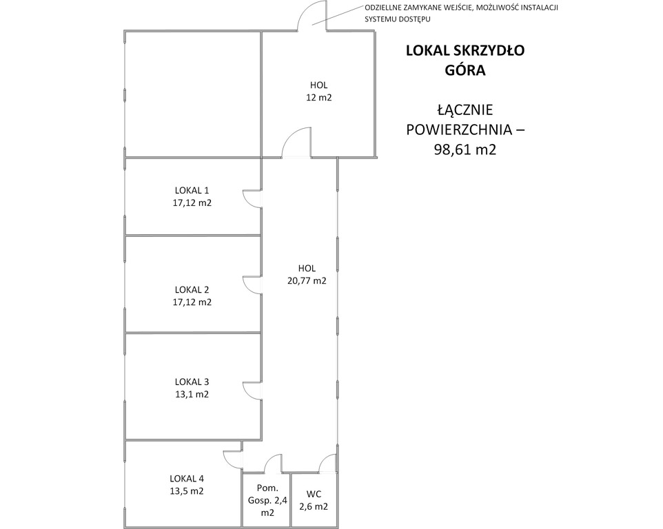 - lokal odseparowany od reszty budynku - wyłącznie wspólna klatka schodowa,