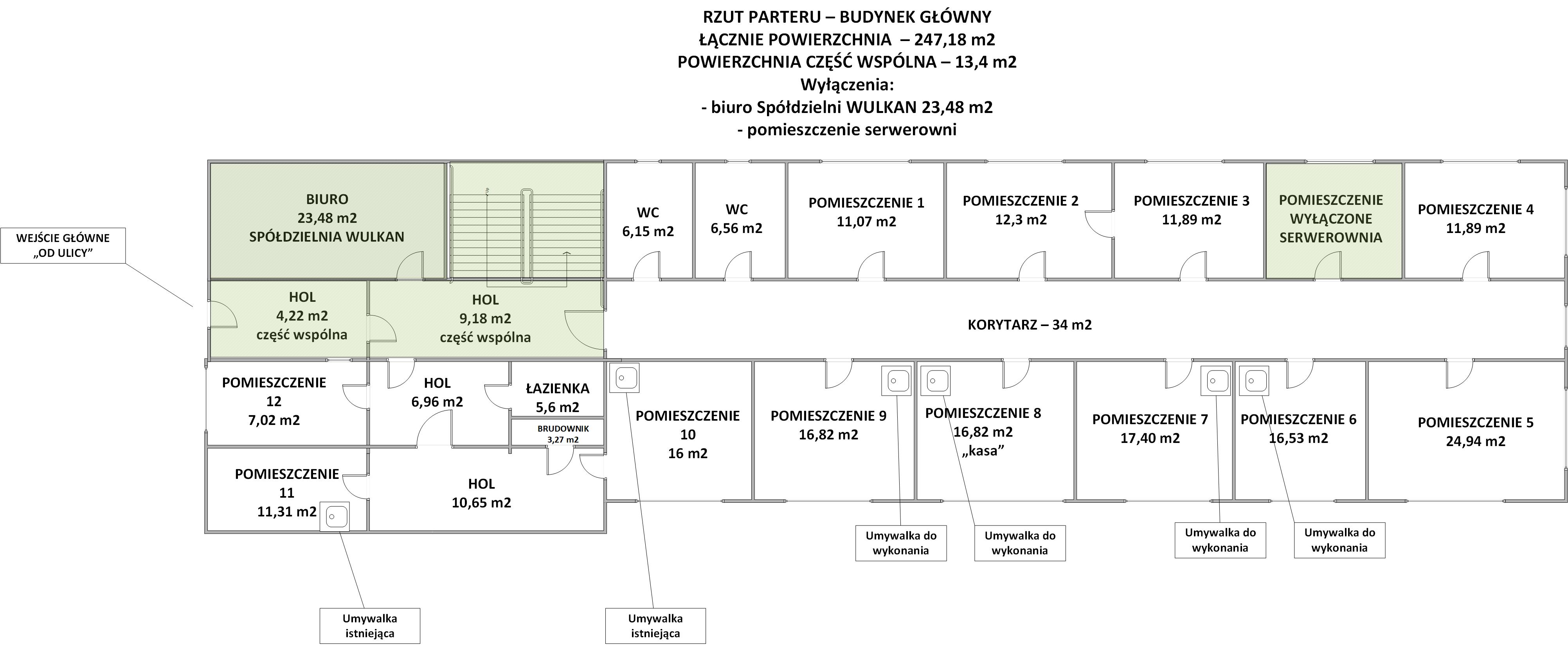 - w dwóch pomieszczeniach zlewozmywaki (możliwość wyizolowania).